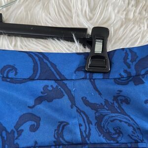 Experience the perfect blend of style and sophistication with these Banana Republic Blue Bermuda Shorts. Featuring a subtle floral pattern in a tone-on-tone design, these shorts offer a tailored look with a structured material that maintains its shape. Ideal for both casual and formal summer occasions, they provide a refined and elegant appearance.size 14 smoke free home