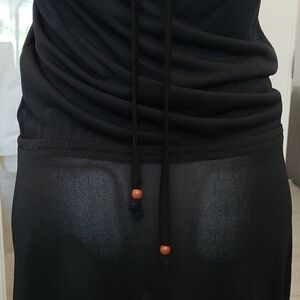 Banana Republic Size XS Petite Black Sheer Halter Dress with a beaded necklace. Elastic waist.