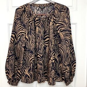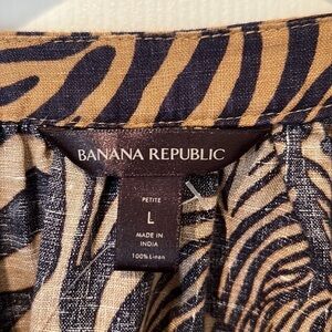 Banana Republic Boho Style Tunic Top Large Petite Navy Blue Tan Zebra Animal