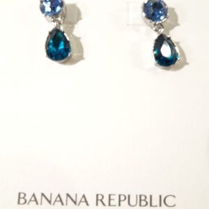 Banana Republic Bold Blue Lapis Ocean Gemstone Line Crystal Drop Earrings NWT 38