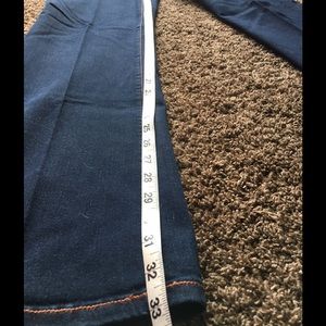 See photos for measurements. Pet free home. Fibers in pic are from the carpet. Will lint roll before shipment. Size 32. To prevent shrinking and fading i have my jeans dry cleaned.