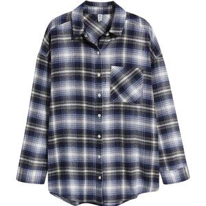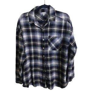 This Banana Republic Boyfriend Oversized Plaid Shirt is super soft and features shades of blue. Perfect for versatile styling, it offers a trendy and comfortable fit. Ideal for casual outings or layering in cooler weather.