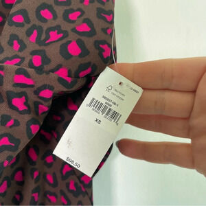 Banana Republic Brown Black Pink Leopard Print Tie Back Slip Dress Size XS NWT