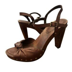 Banana Republic Brown Leather Wooden Platform Heels Sandals Women’s Size 8