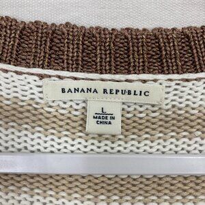 Banana Republic Brown Tan Striped Round Neck Cotton Sweater Large