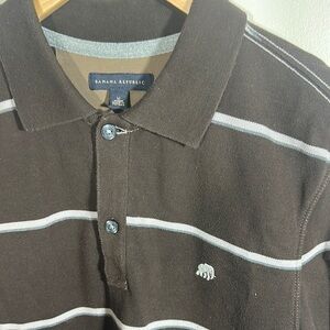 Experience timeless style with the Banana Republic Polo Shirt, featuring a classic fit and a sophisticated brown and gray color palette. Crafted from soft, textured fabric, this shirt offers comfort for any casual occasion. It has a big of an oversized fit!