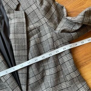 Banana Republic blazer with a checkered plaid pattern. Classic and modern design. Traditional fit. Not oversized or shrunken. Slight hourglass waist. One button closure. Wool with a touch of spandex. Great preowned condition.