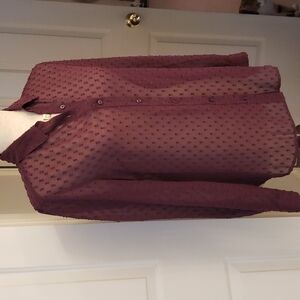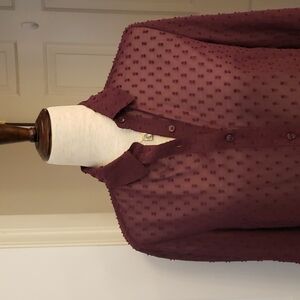 Banana Republic Burgundy Button Front Clip Dot Top NWT