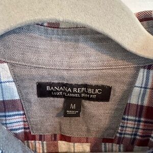 Casual button-down shirt with a burgundy and white plaid pattern. Ideal for relaxed outings.