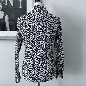 Crisp cotton button down in a navy and white print.