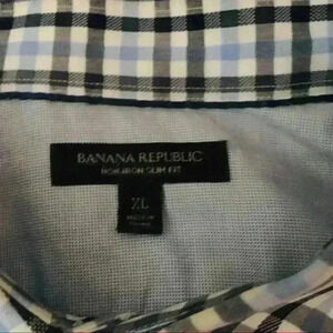 Banana Republic Button Down Shirt XL. Non Iron Slim Fit White, Navy Blue, and Baby Blue Plaid. Excellent Condition