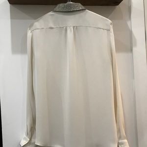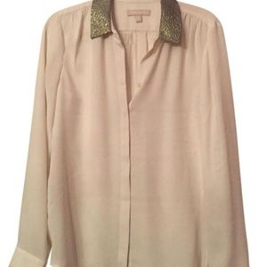 Cream Button Down with Metallic Collar and Cuff Detail, Size Medium
