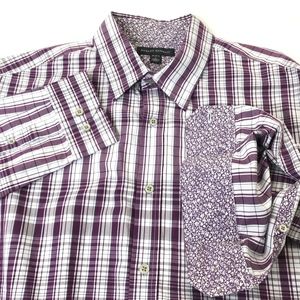 Banana Republic Button Front Shirt Plaid Contrast Cuffs Large 16-16.5