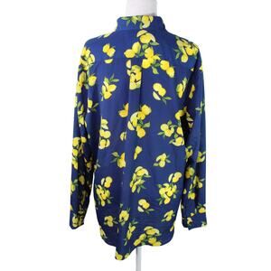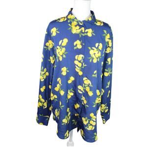 Banana Republic Button Up Long Sleeve Blouse Navy Blue Lemon All over Print XL