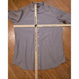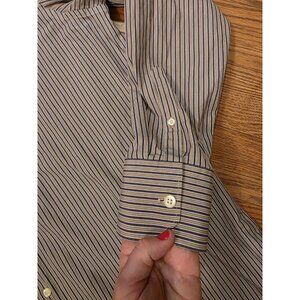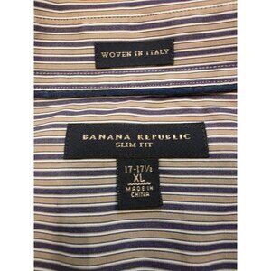 Banana Republic Button Up Shirt Mens XL 17-17.5 Purple Tan Stripes Cotton Slim
