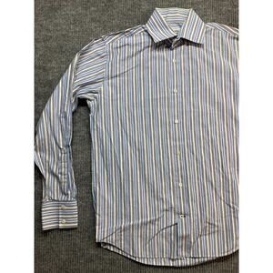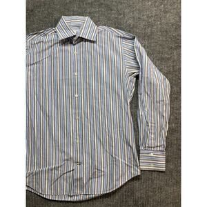 Banana Republic Button Up Shirt Size 15 Mens Blue Striped Long Sleeve Dress