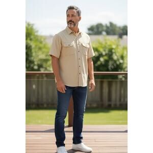 Banana Republic Button Up Short Sleeve Double Pockets Yellow 1980 Vintage Medium