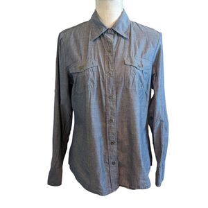 Banana Republic Button-Down Shirt Blouse Women's Medium Gray Soft Wash Cotton