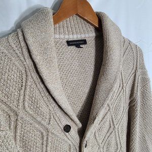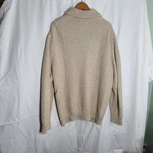 Cable knit at the body. Contrasting waffle knit pattern on sleeves and back.