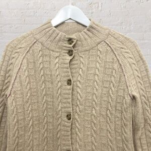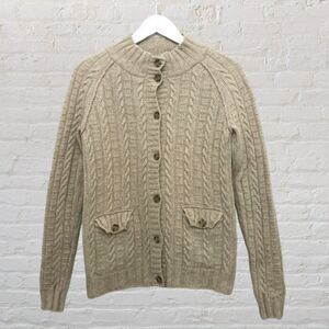 Banana Republic Cable Knit Cardigan S Cashmere Wool Tan Pockets Classic EUC