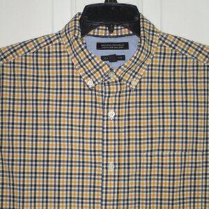 Banana Republic Camden Mens L/S Yellow Cotton Button Down Casual Shirt. Size 16.5/33-34 or Large. Armpit-to-armpit 23", Length 29.5". 100% Cotton in Yellow/Black/White Plaid. Previously owned and lightly used, no sign of wear, stain or defect.