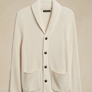 Banana Republic Camo Green Organic Cotton Shawl-Collar Ribbed Cardigan