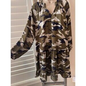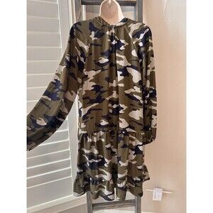 Banana Republic Camo Swing Dress Womens M Green liner included Long Sleeves