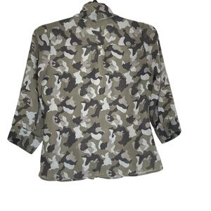 Banana Republic Womens Button Down Blouse Size MP Camouflage Roll Tab Sleeves