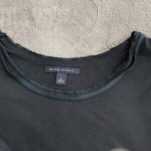 Banana Republic Cap Sleeve Tee S – Black, refined satin trim, raw edge detail. Sleek and versatile.