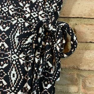 Banana Republic - Cap Sleeved Wrap Dress - Size Small - Black Aztec Pattern
