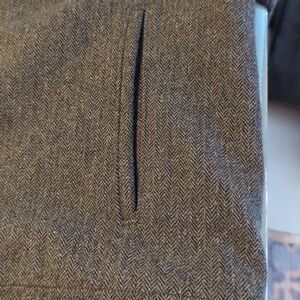 The Banana Republic Car Jacket Coat in Men's XL size is a stylish and versatile outerwear piece perfect for casual occasions during the winter and fall seasons. Made from wool with a herringbone pattern, this mid-length coat features a trendy band collar and a full zip closure with button accents. The classic gray color and tweed fabric add a sophisticated touch while the pockets provide functionality. This Banana Republic jacket combines quality craftsmanship with timeless style, making it a must-have for any man's wardrobe.