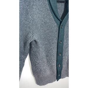 Banana Republic Cardigan Mens Large Navy Grey Ombré Print Wool Button Up Sweater