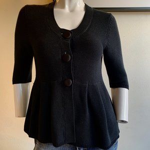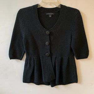 Banana Republic Cardigan Sweater black solid sweaters size M 3/4 sleeve 100% cotton this is gently uset Colors may vary from screen to screen I LOVE REASONABLE OFFERS!!