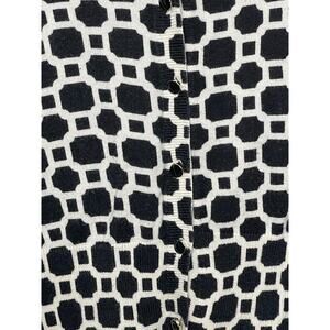 Banana Republic Cardigan Sweater Buttoned Knit Geometric Print Black White SP