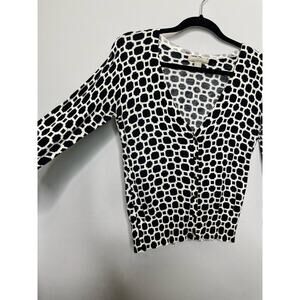 Banana Republic Cardigan Sweater Buttoned Knit Geometric Print Black White SP
