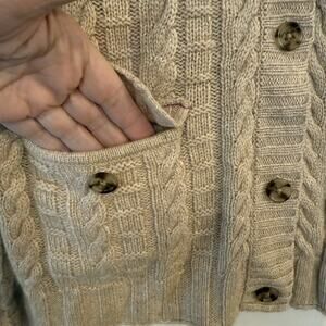 Banana Republic Cardigan Sweater Sz Med Cashmere Blend Tan Cable Knit Mock Neck
