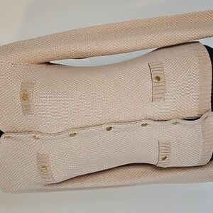 Banana Republic Cardigan Tan With Gold Weave and Gold Buttons