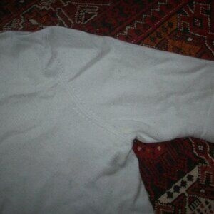 Does have a stain on the bottom front, 2 tiny holes and another pindot stain, all on the front, see pics