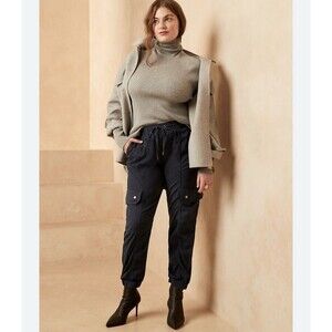 Banana Republic Petite Medium Soft Cargo Jogger Pants Black Drawstring Pockets