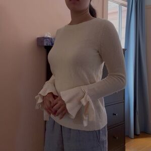 Banana Republic Merino blend sweater in white. Bell tie sleeves.
