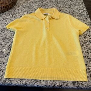 Banana Republic Cashmere Short Sleeve Sweater Polo Bright Citrus Yellow - Small