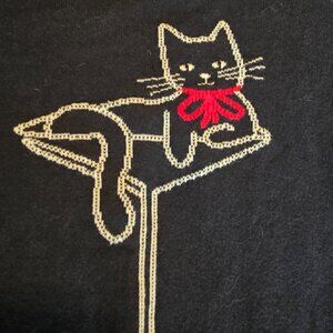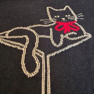 Banana Republic Cat Martini S Small Sweater Navy Blue Red Bow Womens GUC Feline. Some lightening of color a bit but LOTS of life left. RN 54023. 100% Cotton Cat Lady Cat Mom Whiskers. Party Holiday Winter Parties