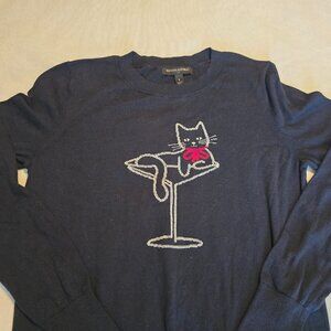 Banana Republic Cat Martini S Small Sweater Navy Blue Red Bow Womens GUC Feline.