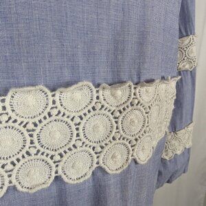 Banana Republic Chambray Blouse Lace Doily Stripes 3/4 Sleeves Womens Sz Medium
