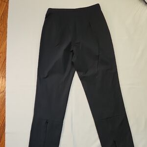 Elegant blue/black pants. Cigarette leg, zips at the back of ankle. Can be worn open or closed. Sleek design. Fitted at hips, has some room in the leg.