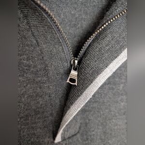 Sophisticated zip-up sweater by Banana Republic. Features a sleek design in charcoal. Ideal for layering. Excellent condition with no flaws and size Large.