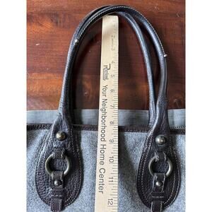 Very good condition sturdy leather and felt gray wool ?combination tote by banana Republic, shows a little wear on the leather edges mostly see photos, clean inside