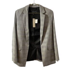 Banana Republic Check Plaid Black White Open Front Blazer Size 2