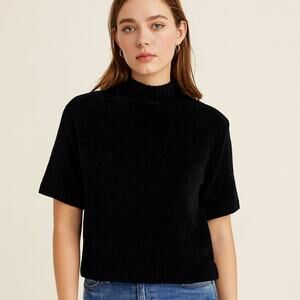 Upgrade your wardrobe with this Banana Republic Chenille Short Sleeve Mock Neck Top in Black, Size L. Crafted from luxuriously soft chenille, this top blends comfort with elevated style. The short sleeves and lightweight knit make it a versatile year-round piece, while the mock neck adds a chic, modern touch.