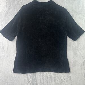 Banana Republic Chenille Short Sleeve Mock Neck Top • Black • Size L
